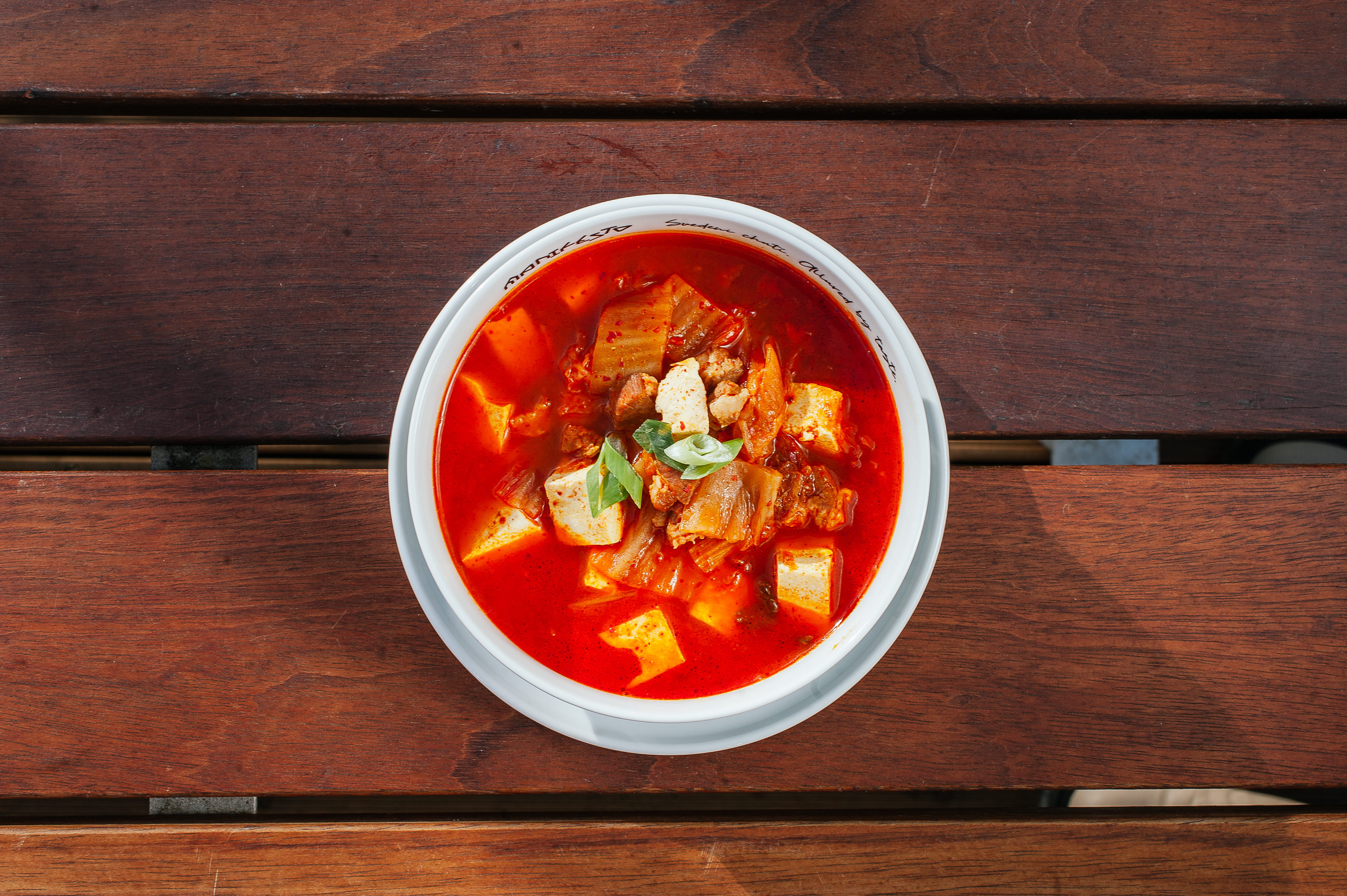 Kimchi, vepřové maso, jarní cibulka, tofu